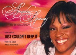 A year ago almost to the day, TBGB made the exciting title track of her 2008 album, Eyes on the Prize its Pick of the Week. The latest single culled from the album, “Just Couldn’t Keep It,” is mid-tempo and straightforward, with calls from Angie and responses from the Voices of Victory, a group out of her home church, First Corinthians MB. The song riffs on the “I just couldn’t keep it to myself” theme that has appeared frequently in gospel music through the years.